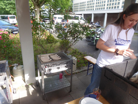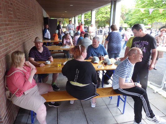 Unterstützt wurde die Behindertenseelsorge von 11 Mitarbeiterinnen und Mitarbeitern von "Wiesbaden Marketing", die fleißig mit anpackten, die gut 100 Besucher mit Kaffee und Kuchen sowie später mit Würstchen, Steaks und Salaten versorgte.